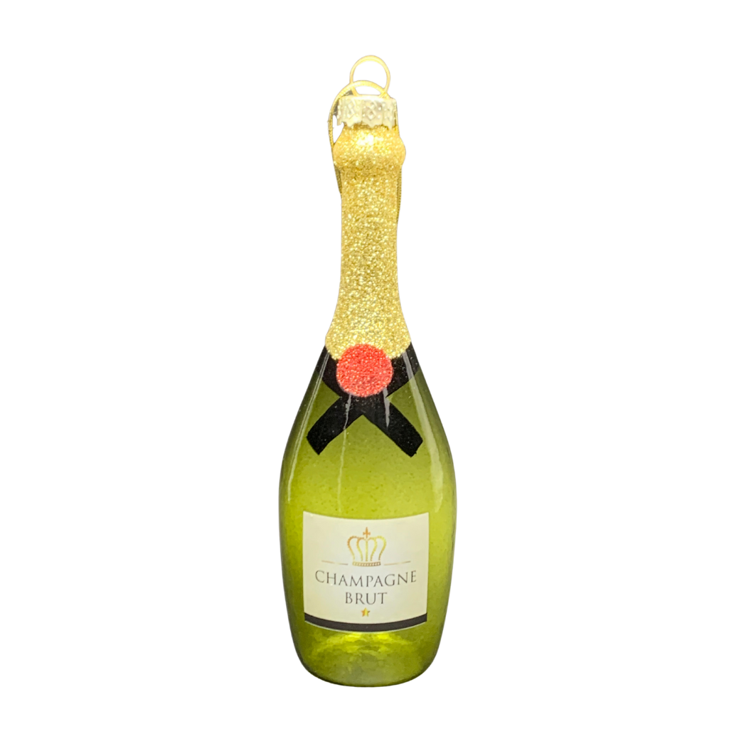 For the Champagne lover or that special person you pop bubbly with. Adds a beautiful, stylish touch to your Christmas tree or to accent the decorations within your home. This would make a great gift for the hostess of your next Christmas party or a fun white elephant gift! Glass blown with hand applied glitter and trim.