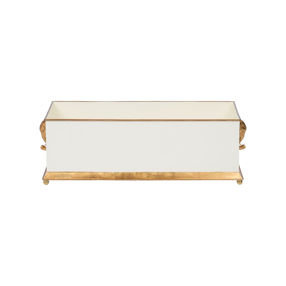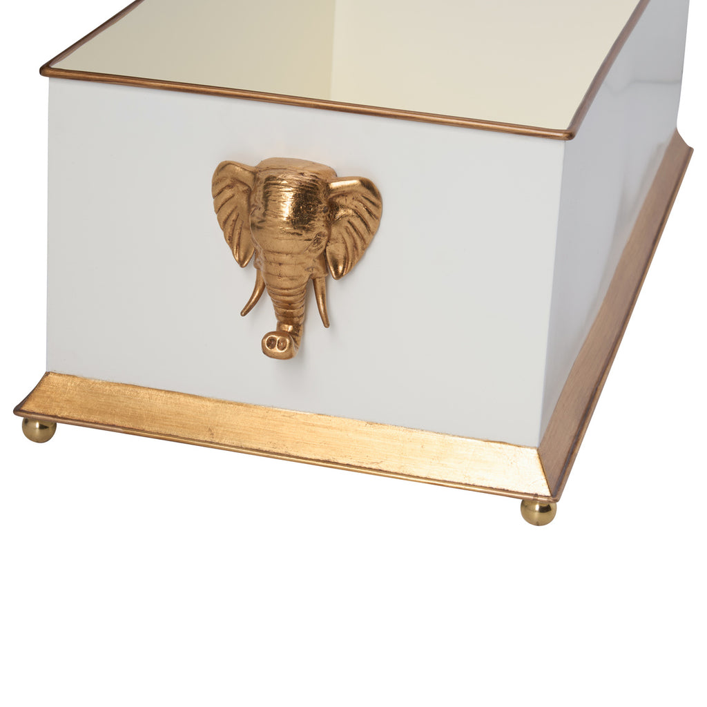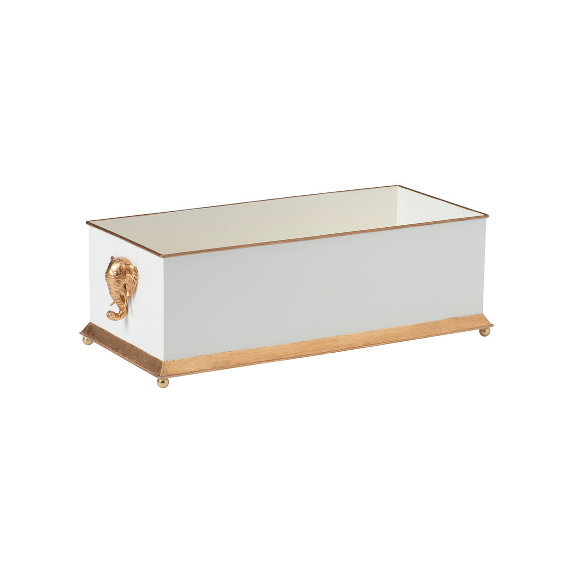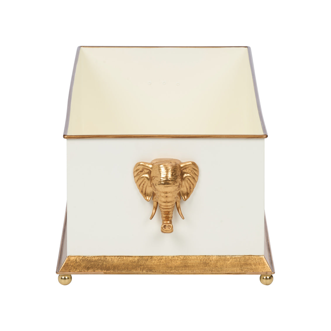 Elevate your greenery with this planter. This elegant metal planter features refined gold accents and sculptural elephant head handles for a touch of whimsy and sophistication.
