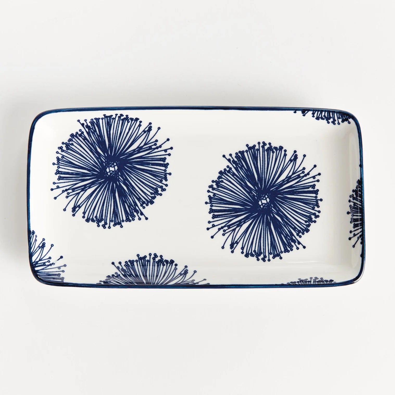 Sold individually. Set the table with a modern composition in blue. This petite stoneware tray is made of dishwasher and microwave safe porcelain. Simply perfect for olives, pickles or any little culinary accoutrements.