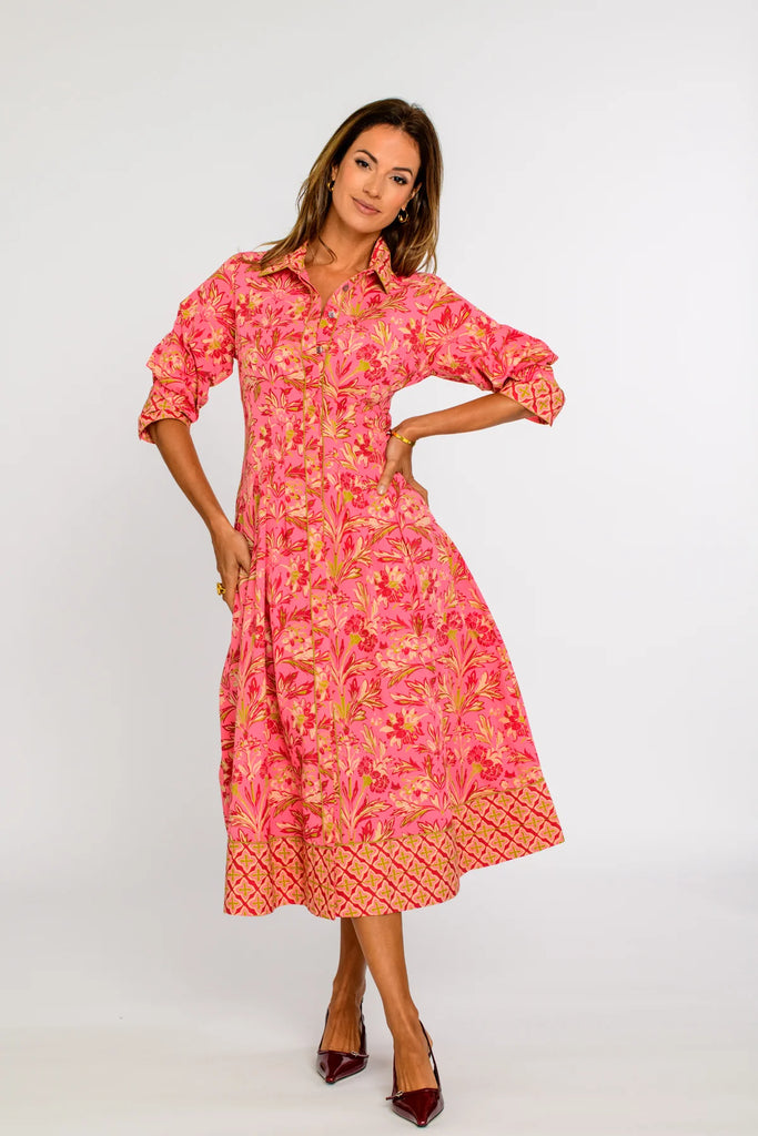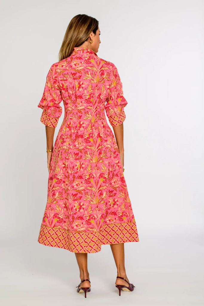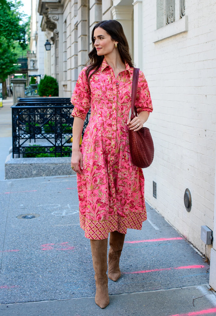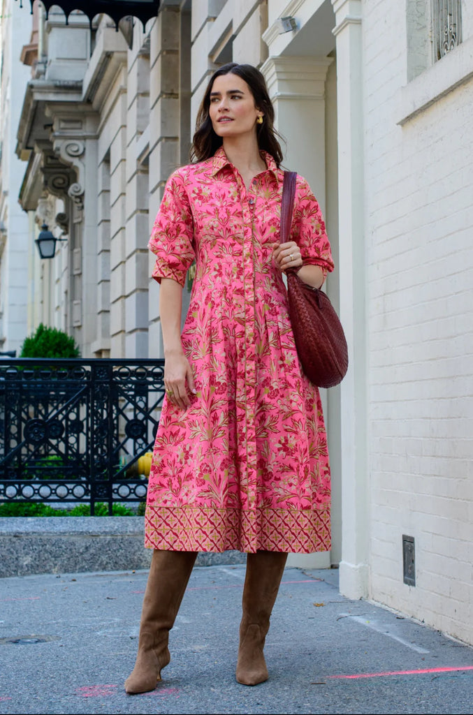 Perfect for dressing up or down with your favorite boots. We love her stitched down pleated waist and her unique cropped sleeves, with a gathered puff and button cuffs. Cotton poplin. Collar neckline. Button front. Covered placket. Gathered elbow length sleeves with button cuffs. Side seam pockets. Decorative stitching & piping accents. Models are both 5'11" wearing size XS.