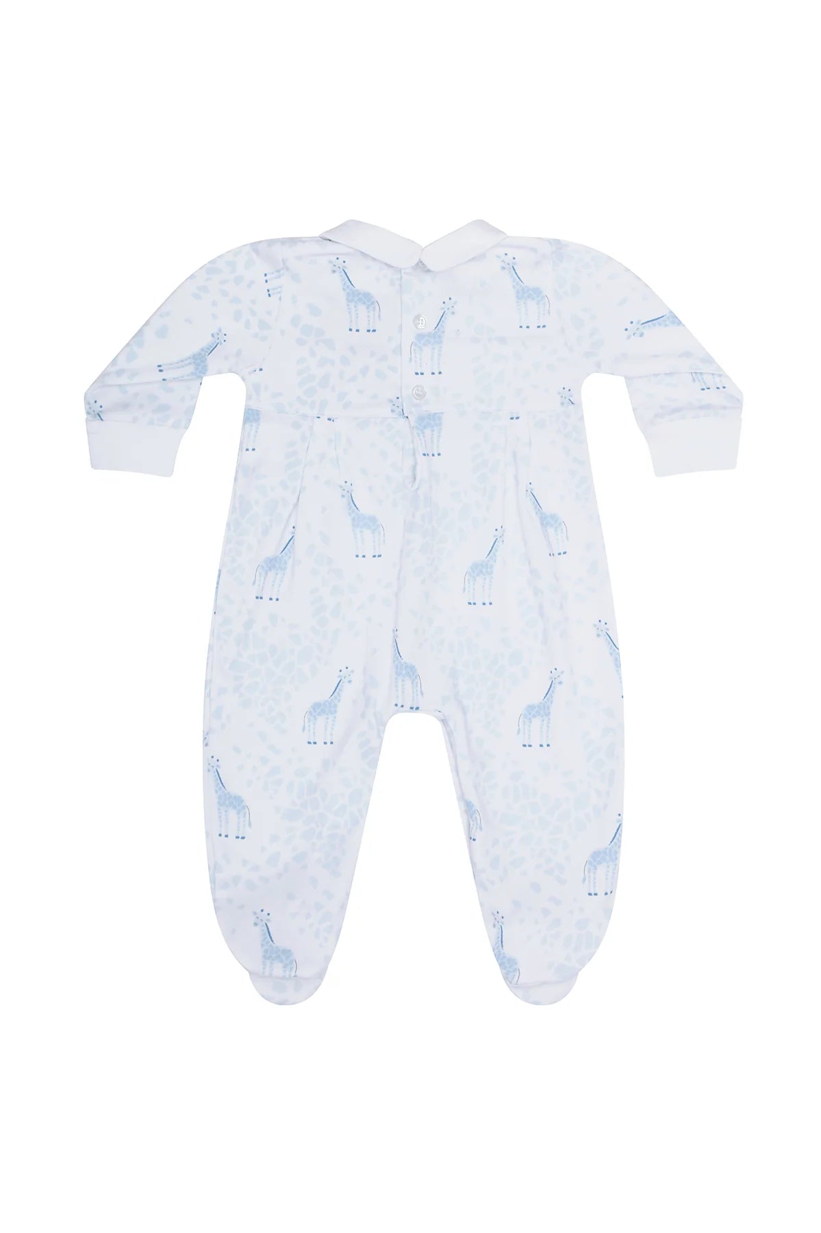 A harmonious blend of comfort, cuteness, and convenience designed for the tiniest adventurers. This footie is a testament to the art of keeping your little one snug and stylish at every stage. Create lasting memories wrapped in the luxurious embrace of Pima cotton. Elevate your baby's wardrobe with this Giraffe Print Smocked Footie, and experience the joy of dressing them in unmatched comfort and adorable style. 100% Peruvian Pima Cotton. Machine washable.