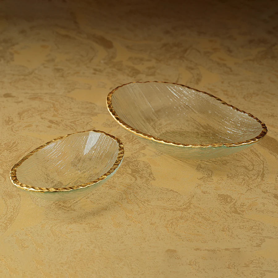 Large Textured Glass Gold Rim Bowl