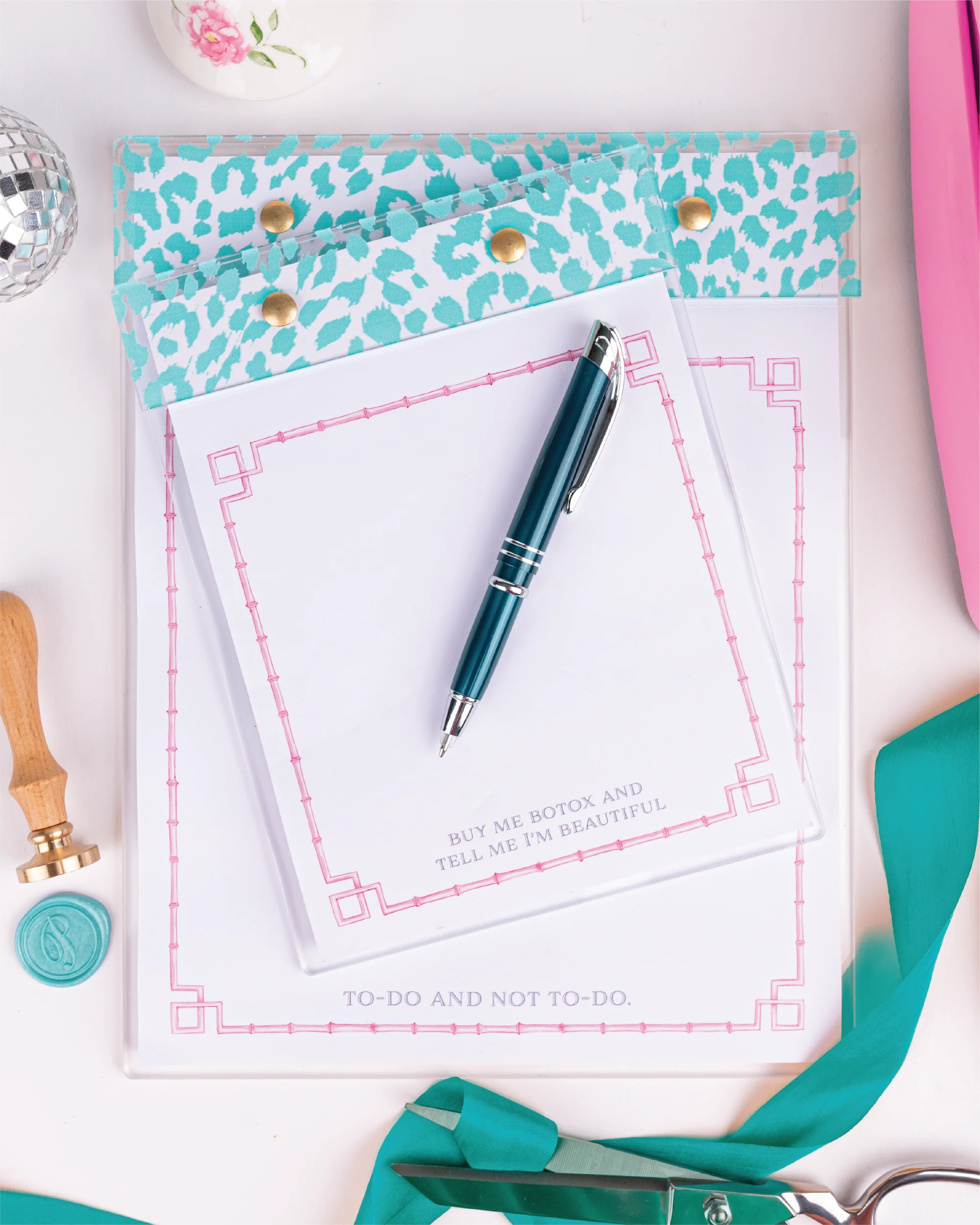 Turquoise Leopard - Pink Bamboo / To-Do or Not To-Do / Large