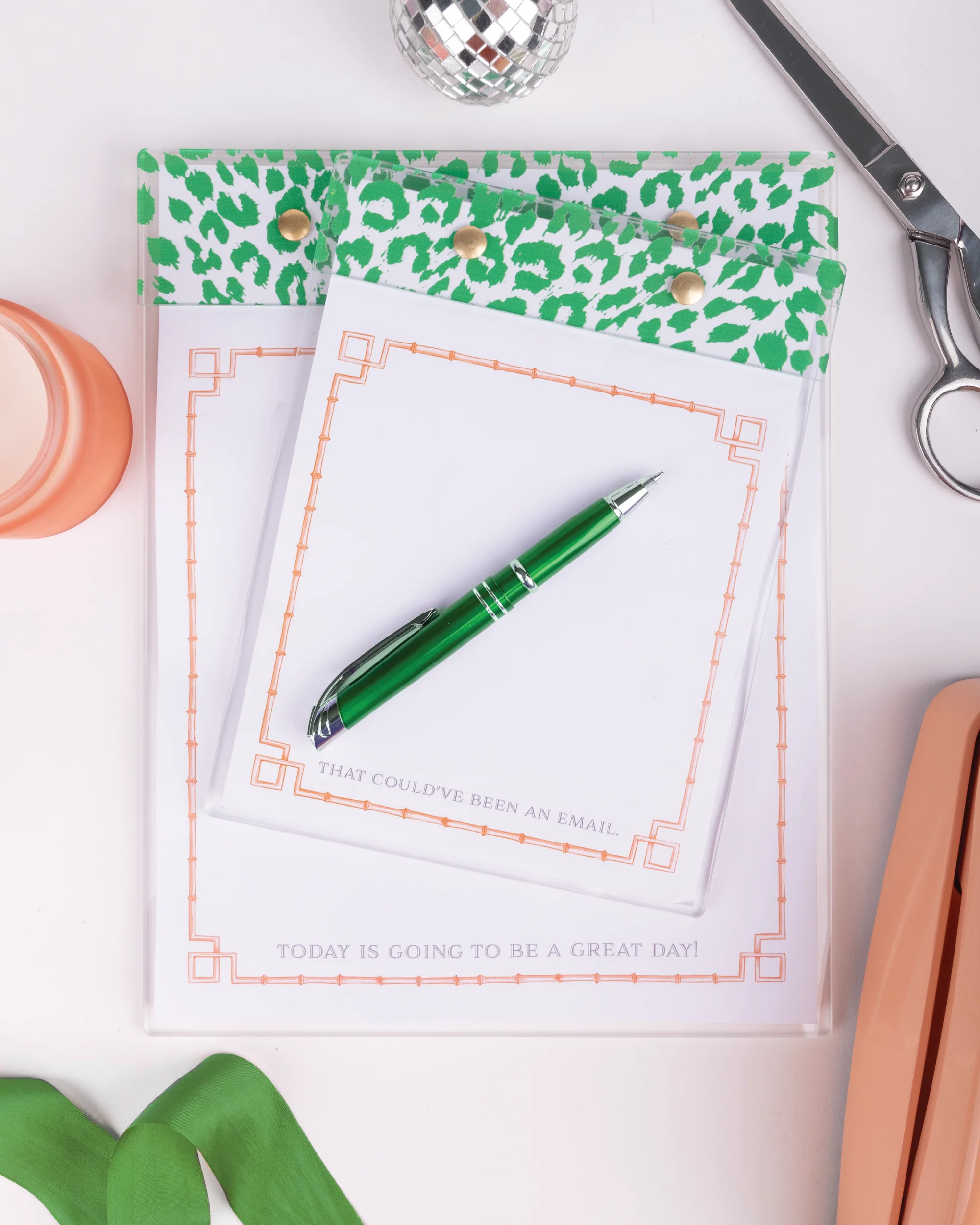 Green Leopard - Orange Bamboo / Today Is Going To Be A Great Day! / Large