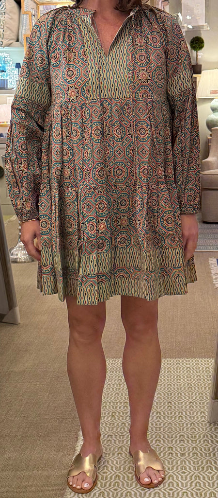 Short dress. Pleats at the bottom. Elastic cuff on sleeves.