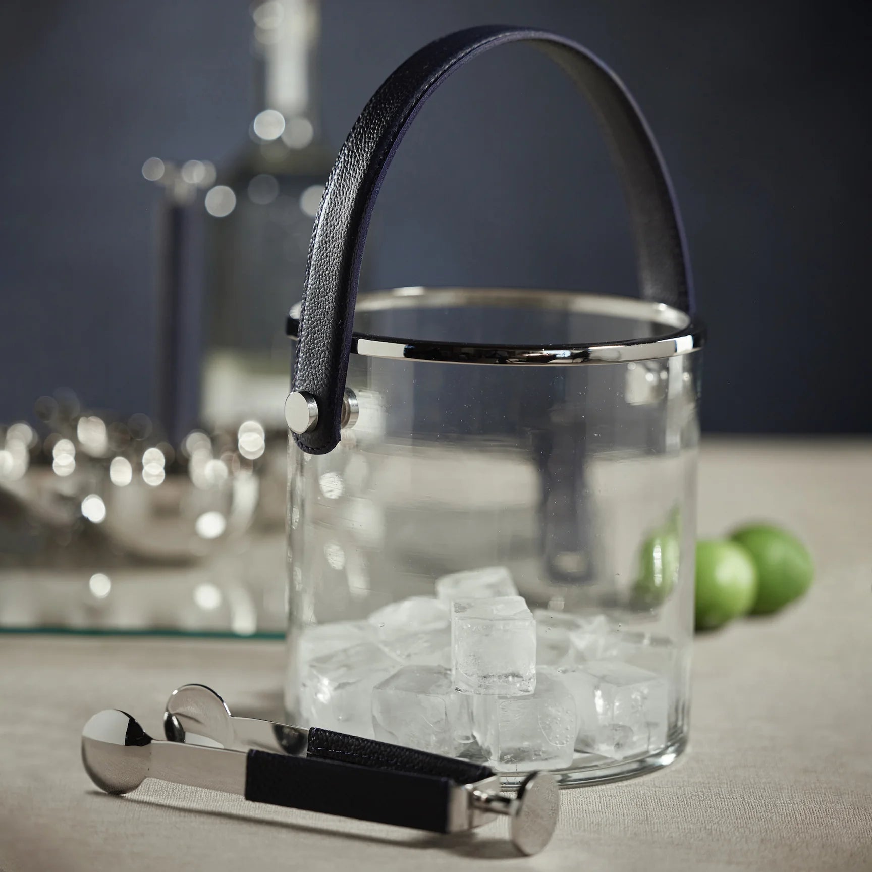 Nickel & Leather Laguna Ice Bucket