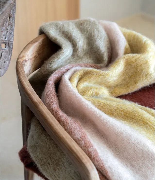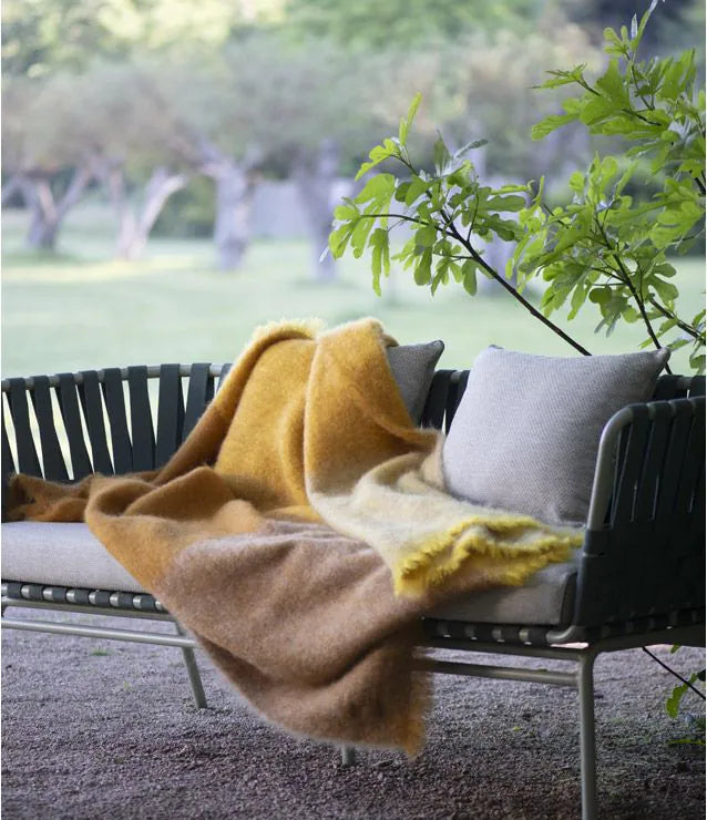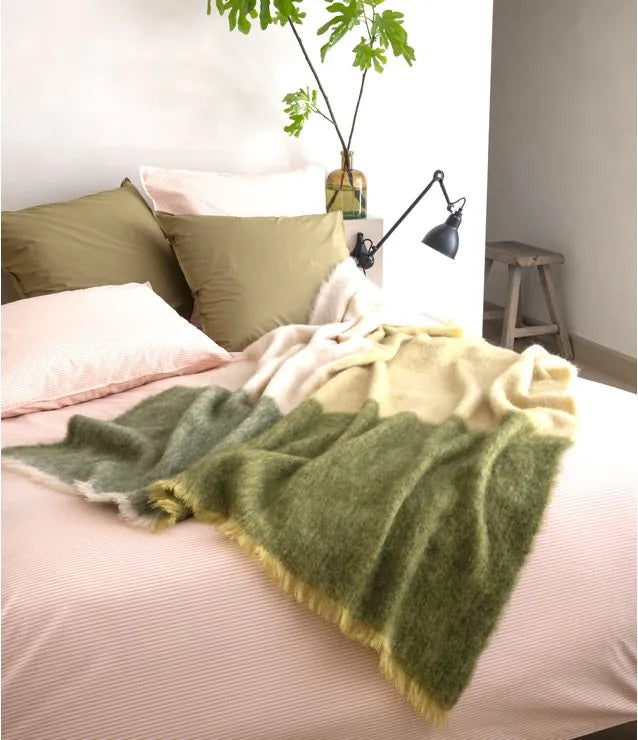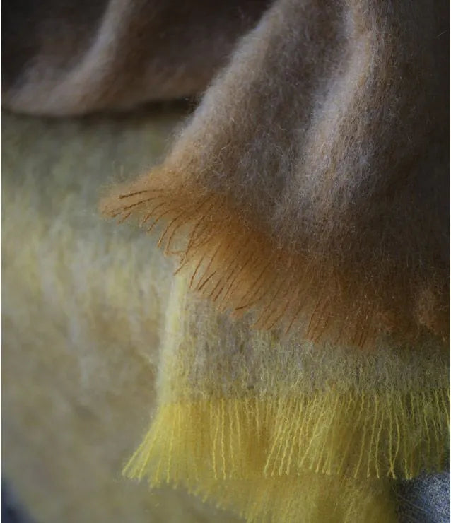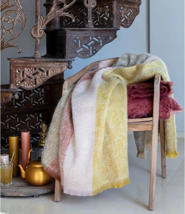 Light, aesthetic and sensual: this is the essence of mohair. Thanks to its natural brilliance, mohair matches ideally the nicest colours and magnify them to make them gleaming bright. Created in natural or vibrant colour shades to fit in with any kind of interior. 100% Mohair. Entirely made in France.