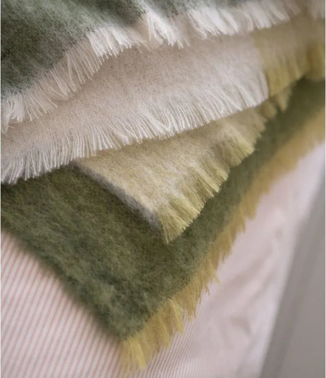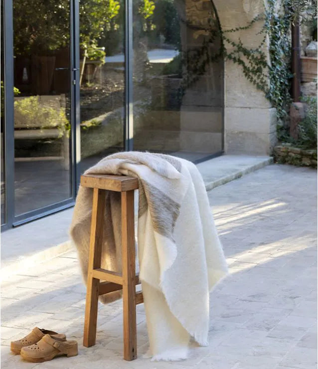 It is not necessary to wash your fabric before its first use, nor throughout its life. However, we recommend that you ventilate and remove dust, as well as protect it from repetitive rubbing (for example, avoid putting a throw on a seat) and animals (which could damage it). If you stain your fabric, we recommend taking it to the dry cleaners for a dry wash (making it clear to them that it is a wool product). It is therefore essential to show, when you drop off your blanket or duvet at the dry cleaners, the white care label (sewn under the red label on one side of the article), so that it is properly taken care of.