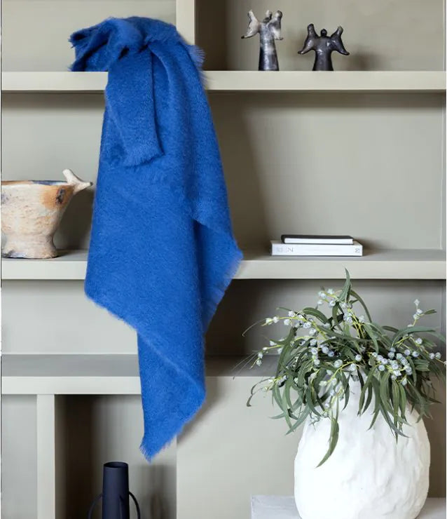 The vaporous & warm throw. The vaporous effect of mohair is the essence of this sensual fibre. Its intrinsic brightness enhances each colour of our wide colour palette. A true home accessory, the Mohair throw provides a simple touch of elegance on your sofa, armchair or the end of your bed. Warm throw with an intense softness, it can accompany you in your nomadic life according to your desire. This mohair throw is made to surround you with a benevolent comfort wherever you are. 100% Mohair. Entirely made in France.