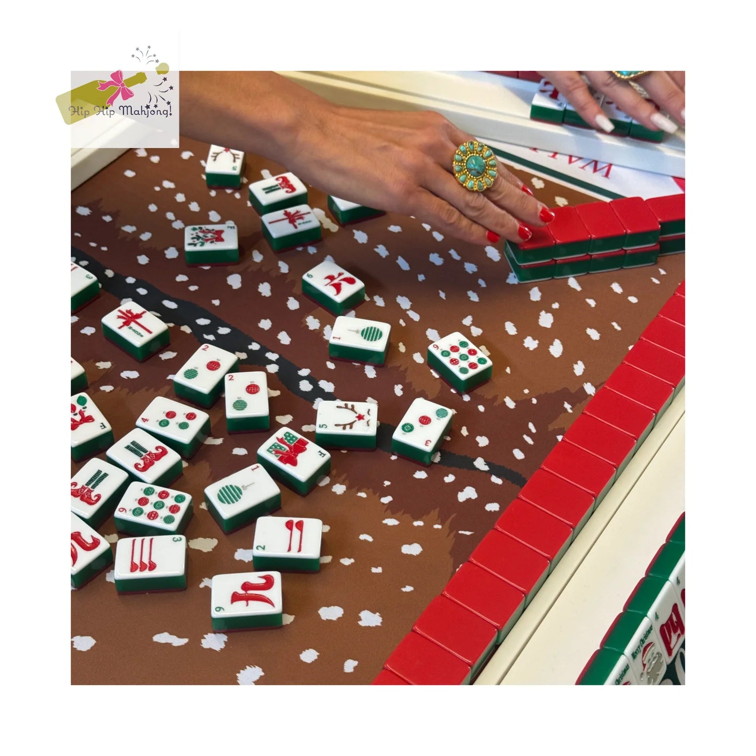 Acrylic hand-painted tiles, with a thoughtful design to spread Holiday Cheer to you & your Mahjong group! Rudolph certainly has had his fair share of the lime light and these tiles will too! This collection takes center stage with a 3 layer tile in winter green, rudolph red and white snow. Each tile shows off cheery images telling a festive story each time you play! But what truly makes this set glow are the bams, 1-9 builds a Rudolph! Symbolizing the inner struggles we all face, letting go of the judgement from others, our need for approval, learning to accept ourselves for who we are created to be and ultimately shining our light. May we all love our inner Rudolph despite what people say, think or do to us! Get ready to be obsessed with this unique tile size! Lines up on the rack perfectly.