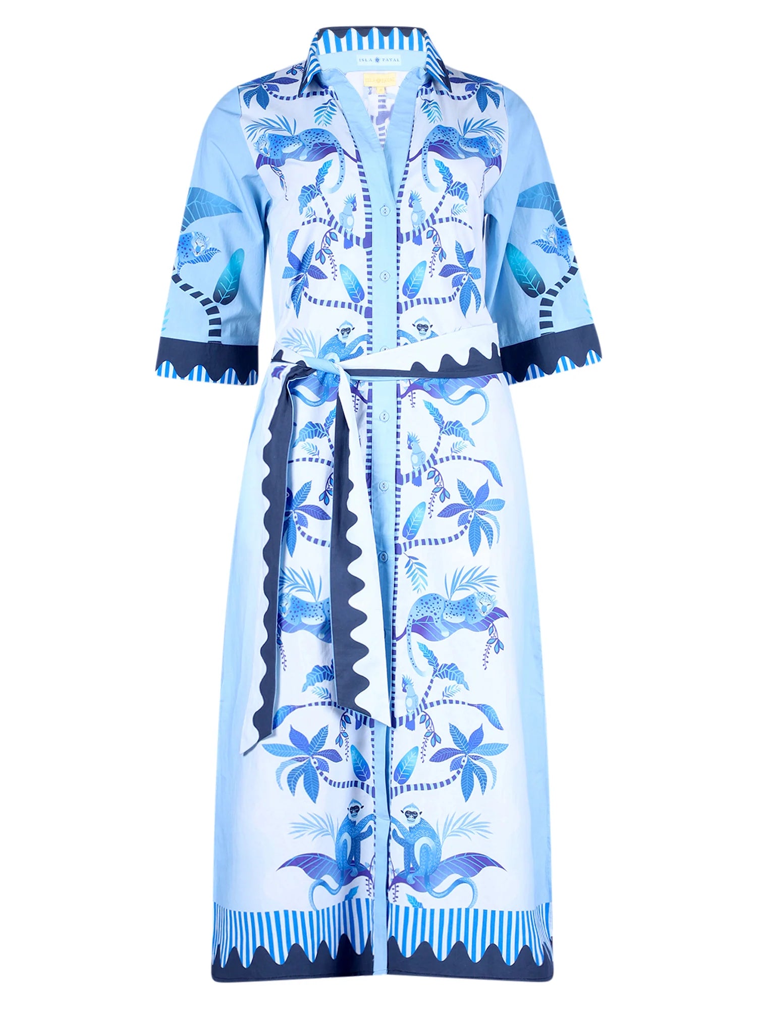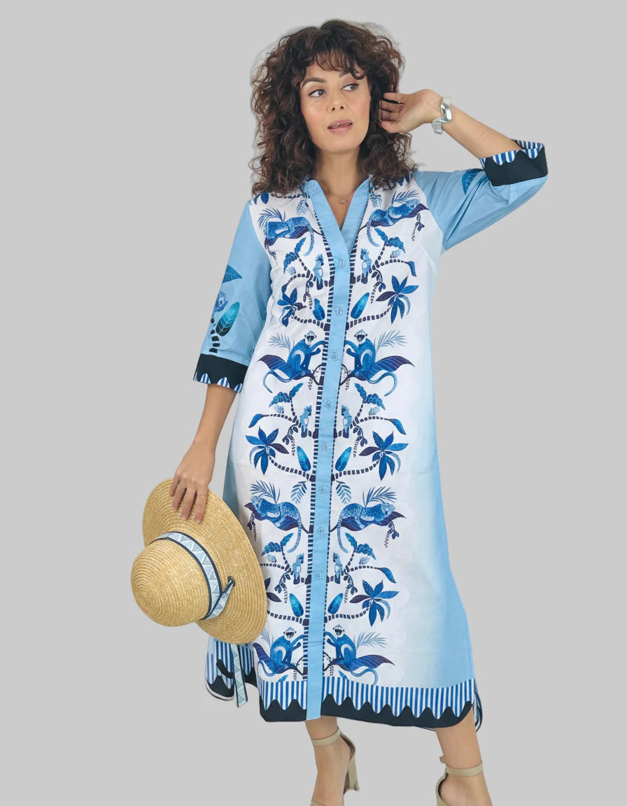 A slimming shirt dress with a flattering silhouette. This versatile day-dress can double up as a beach coverup or a duster coat. Dress up with heels, dress down with sneakers. Buttons down the front, can be worn as a duster coat with jeans or shorts. Comes with an optional sash. Pockets on the side seam. Curved hemline for an elevated look. Cotton poplin.