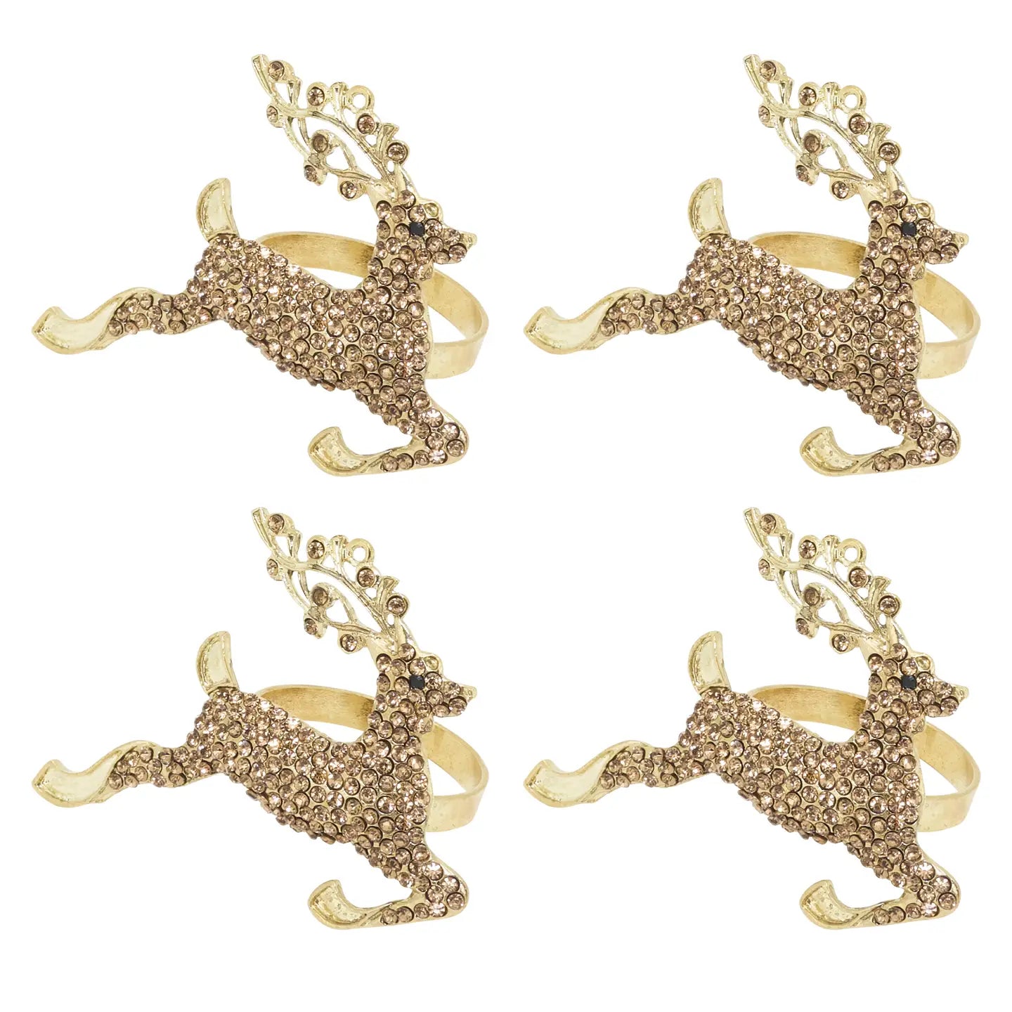 SET of 4 Gold Beaded Reindeer Napkin Rings