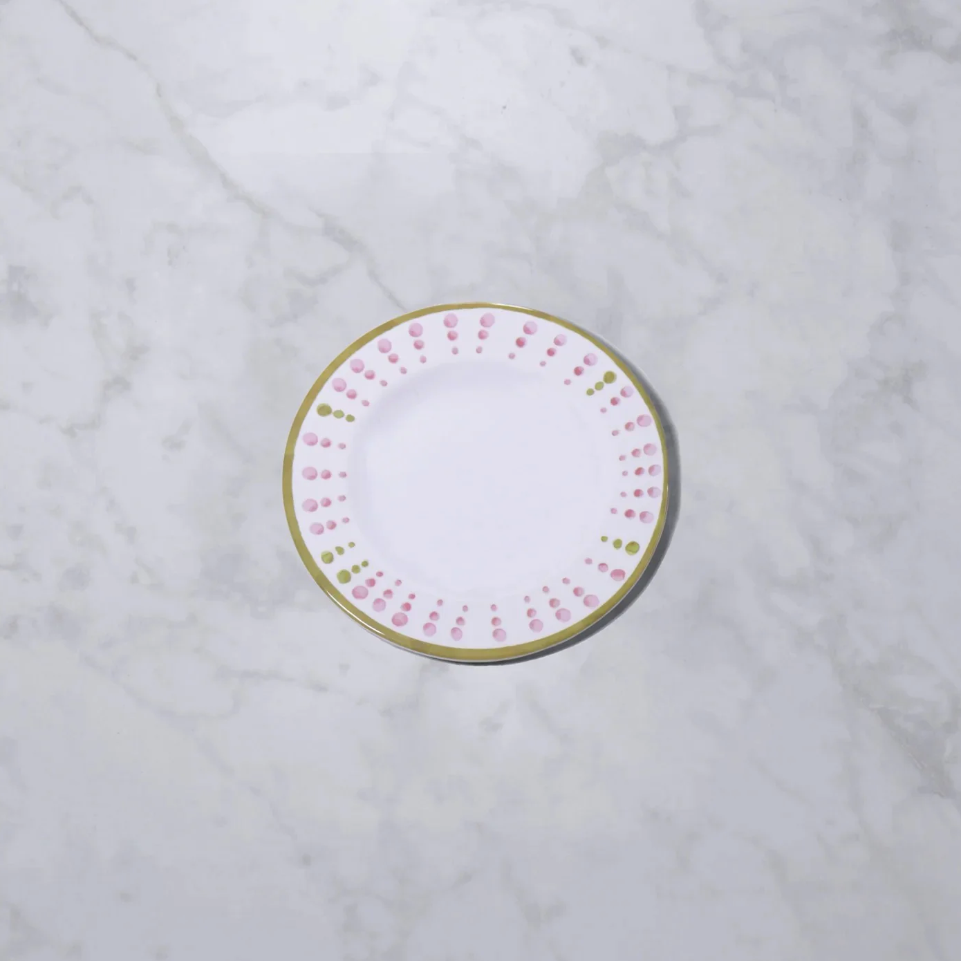 SET of 4 Pink & Green Dots Vida Athena Salad Plates