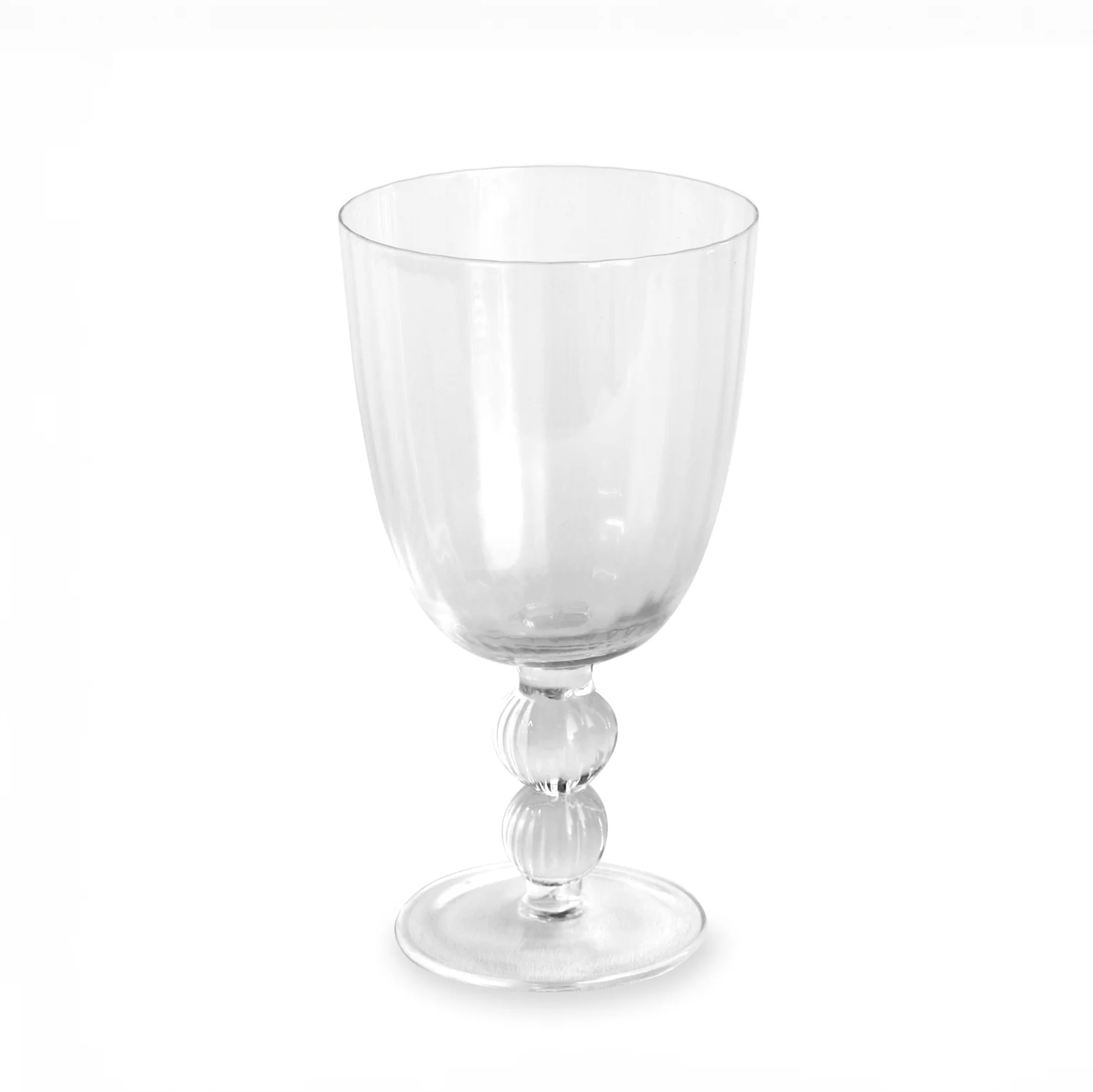 A glass for all seasons! This stemware celebrates age-old glassblowing techniques in sparkling new designs. The brilliantly clear Venice All Purpose is distinguished by its light-catching rippling texture. A great glass for your favorite wine or other beverage. Sold as set of four stems, adds a lively touch to any setting. Each piece is a unique work of art; 100% mouth-blown and hand etched. Handmade.