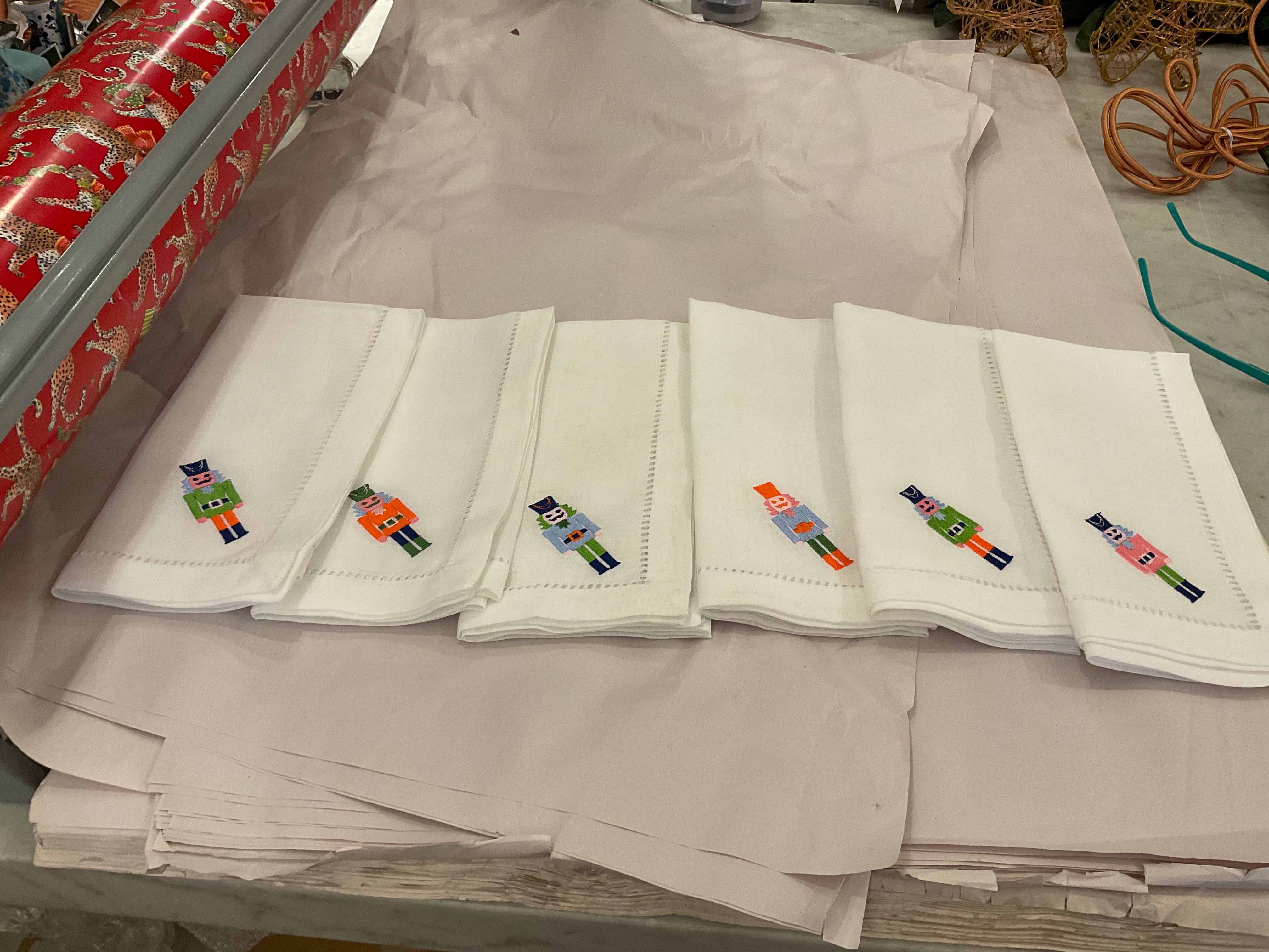 SET of 6 Embroidered Dinner Napkin w/Hemstitched Border