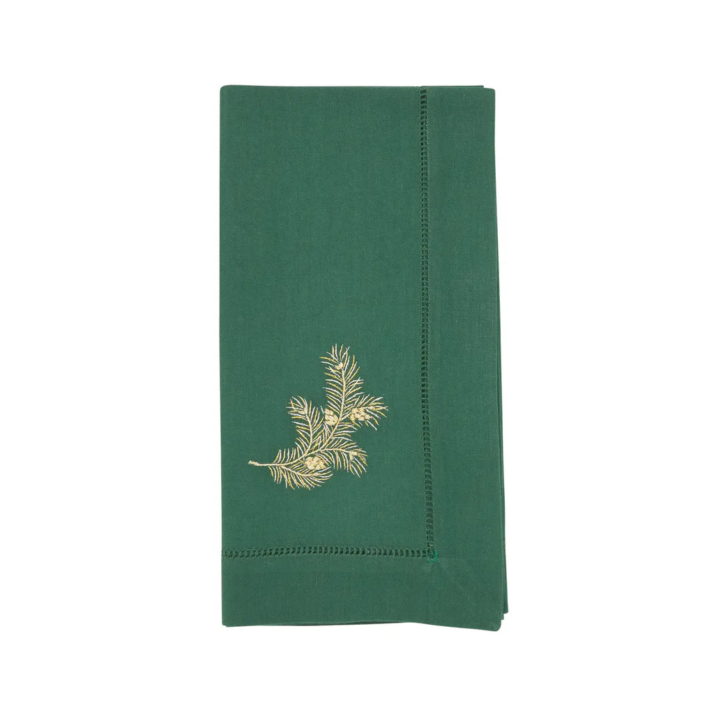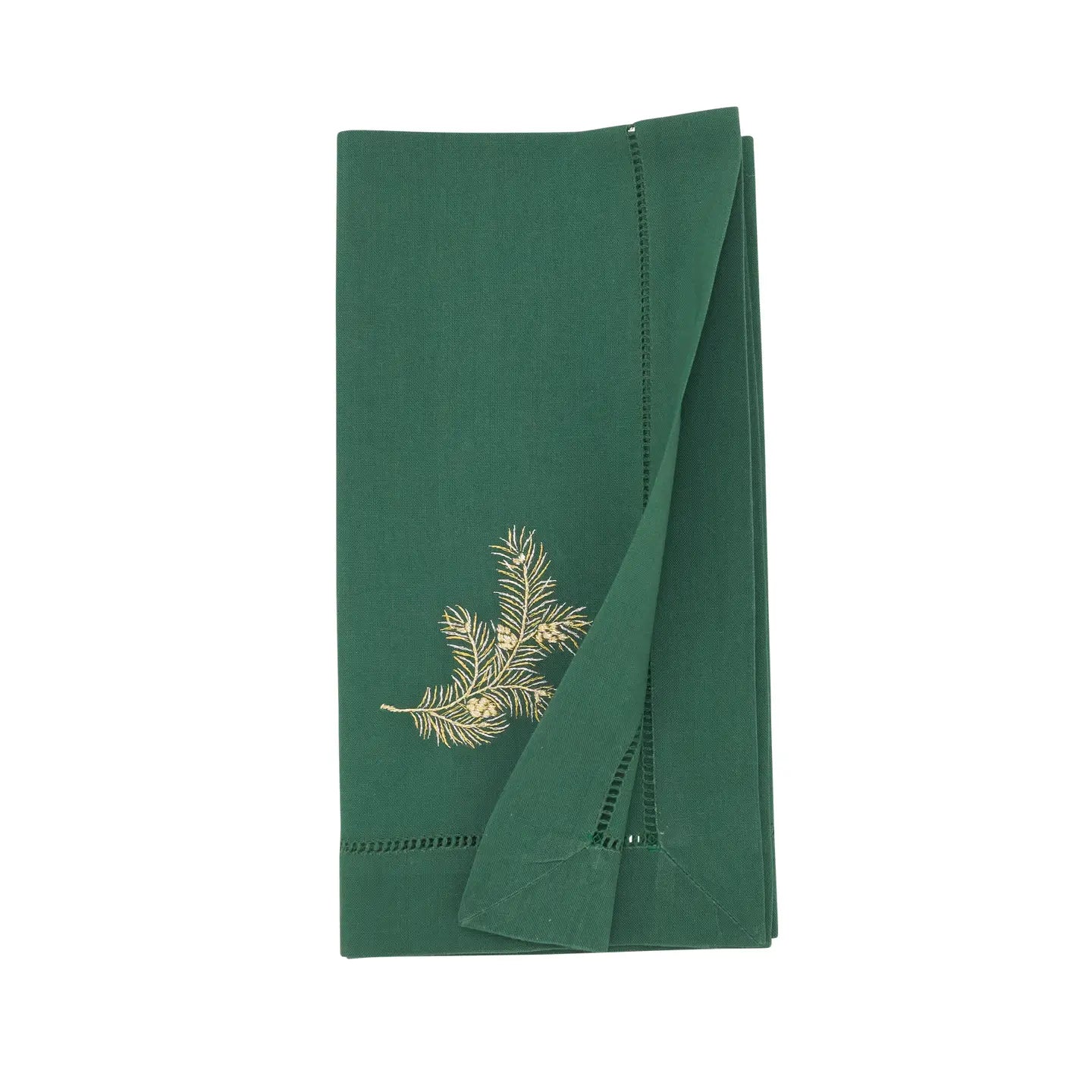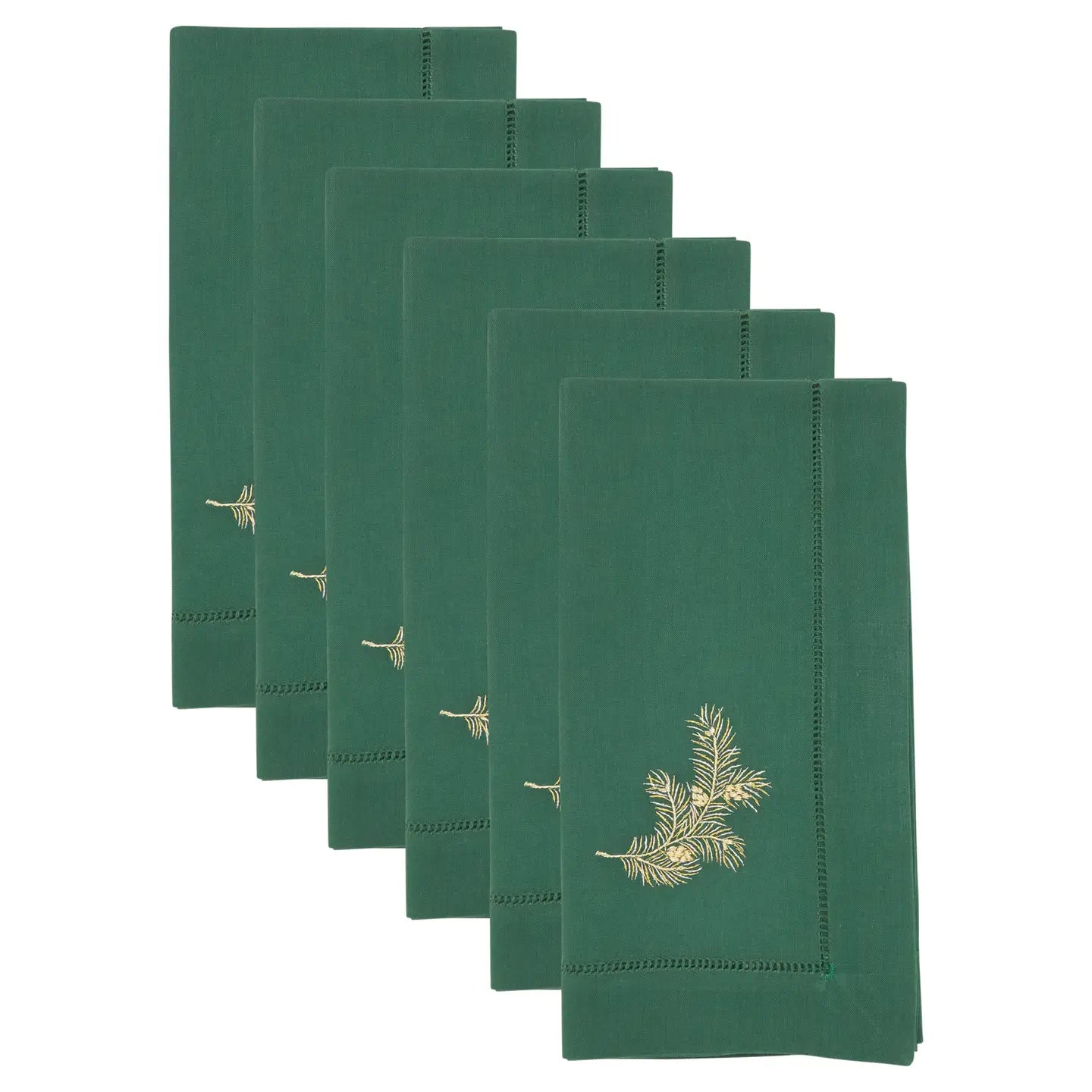 SET of 6 Jasper Green Embroidered Pine Needle Hemstitch Napkins