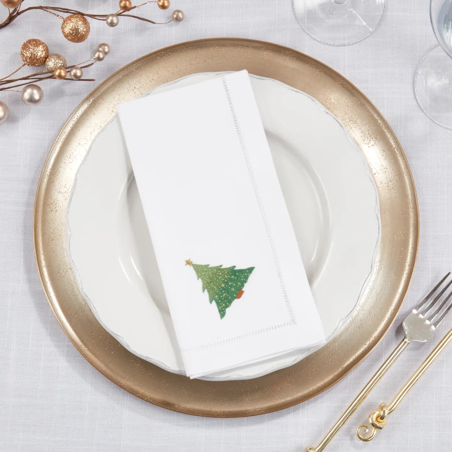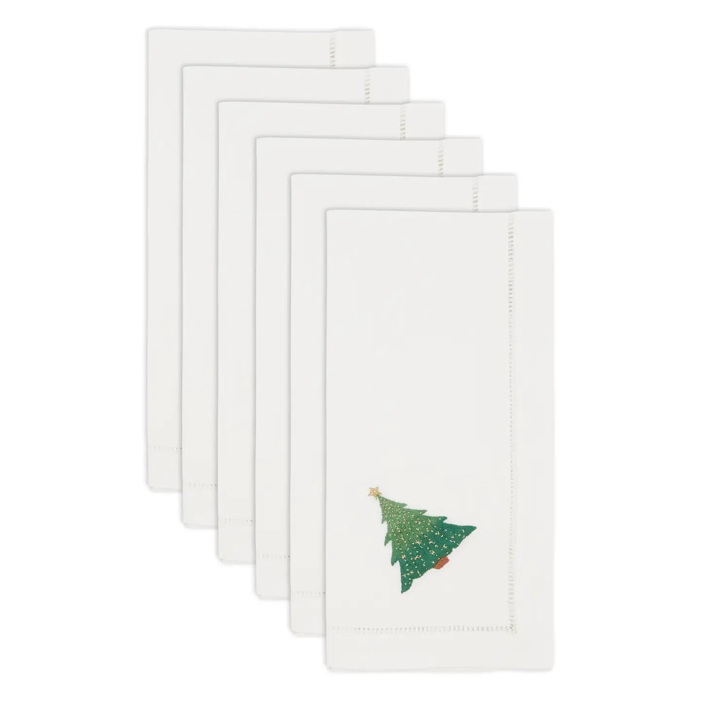 SET of 6 White Whimsical Christmas Tree Embroidered Napkins