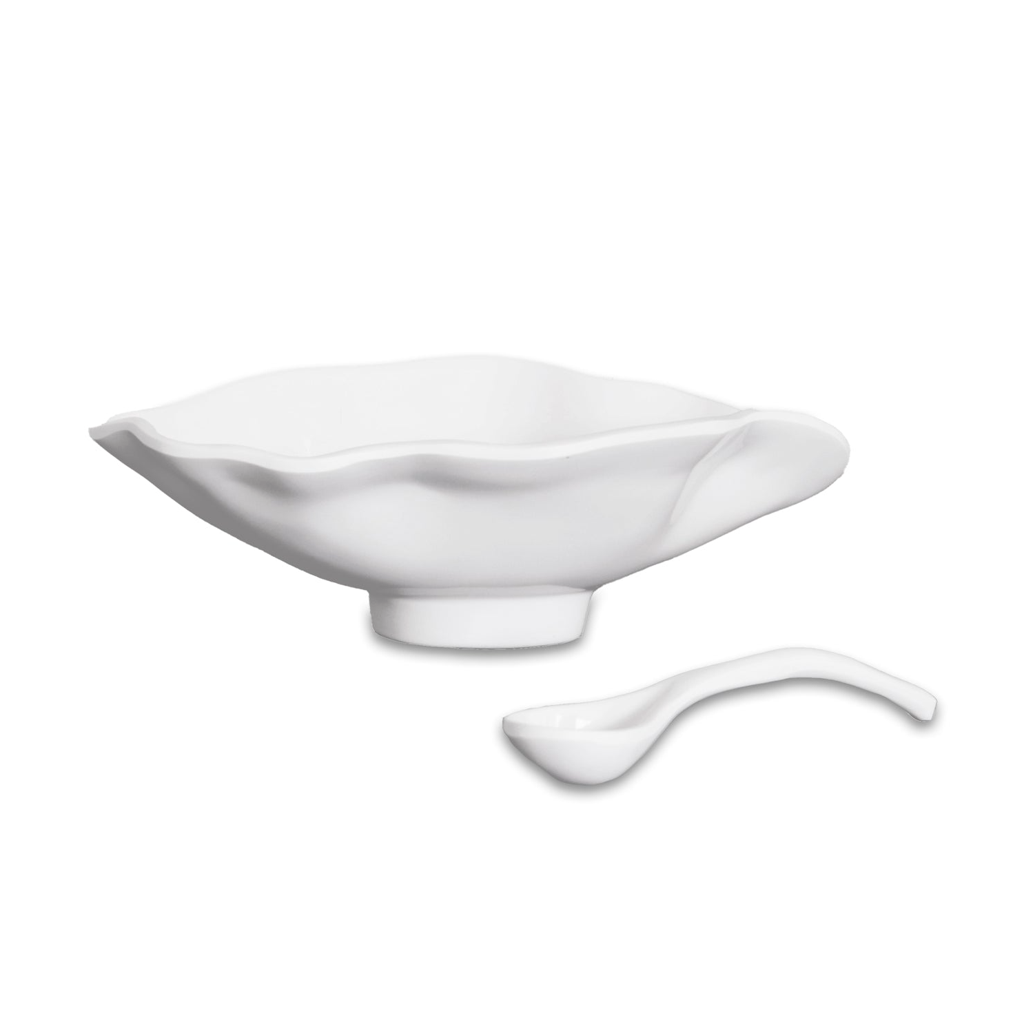 Spoon up something wonderful. The sensational 2-part piece is notable for its great shape, gleaming white surface and lively design; the accompanying spoon makes it an item that's sure to delight. Great for serving salsa, sauces or sides, this bowl and spoon combo makes a statement wherever it is placed. A marriage of style and substance in a material made for today’s busy lifestyles. With the look of ceramics and the convenience of melamine, the pieces are ideally suited for indoor and outdoor entertainment.