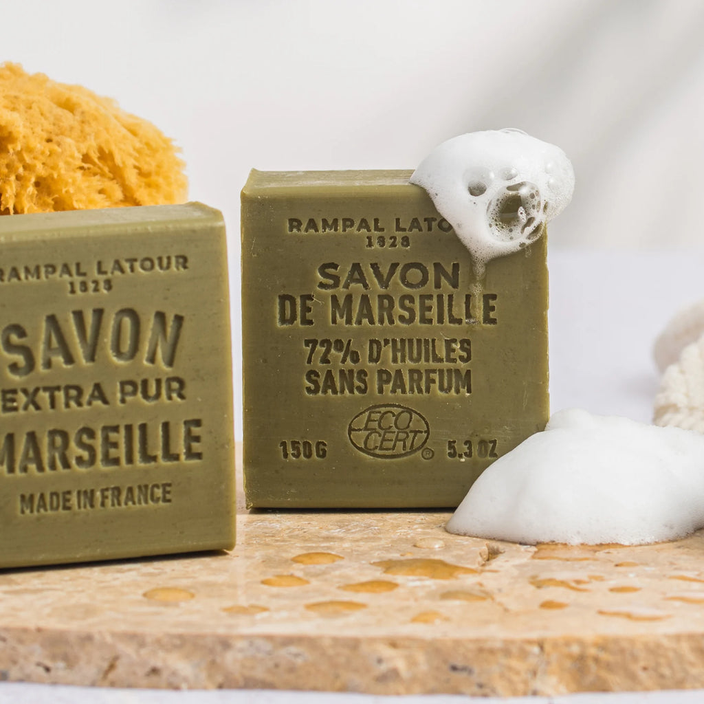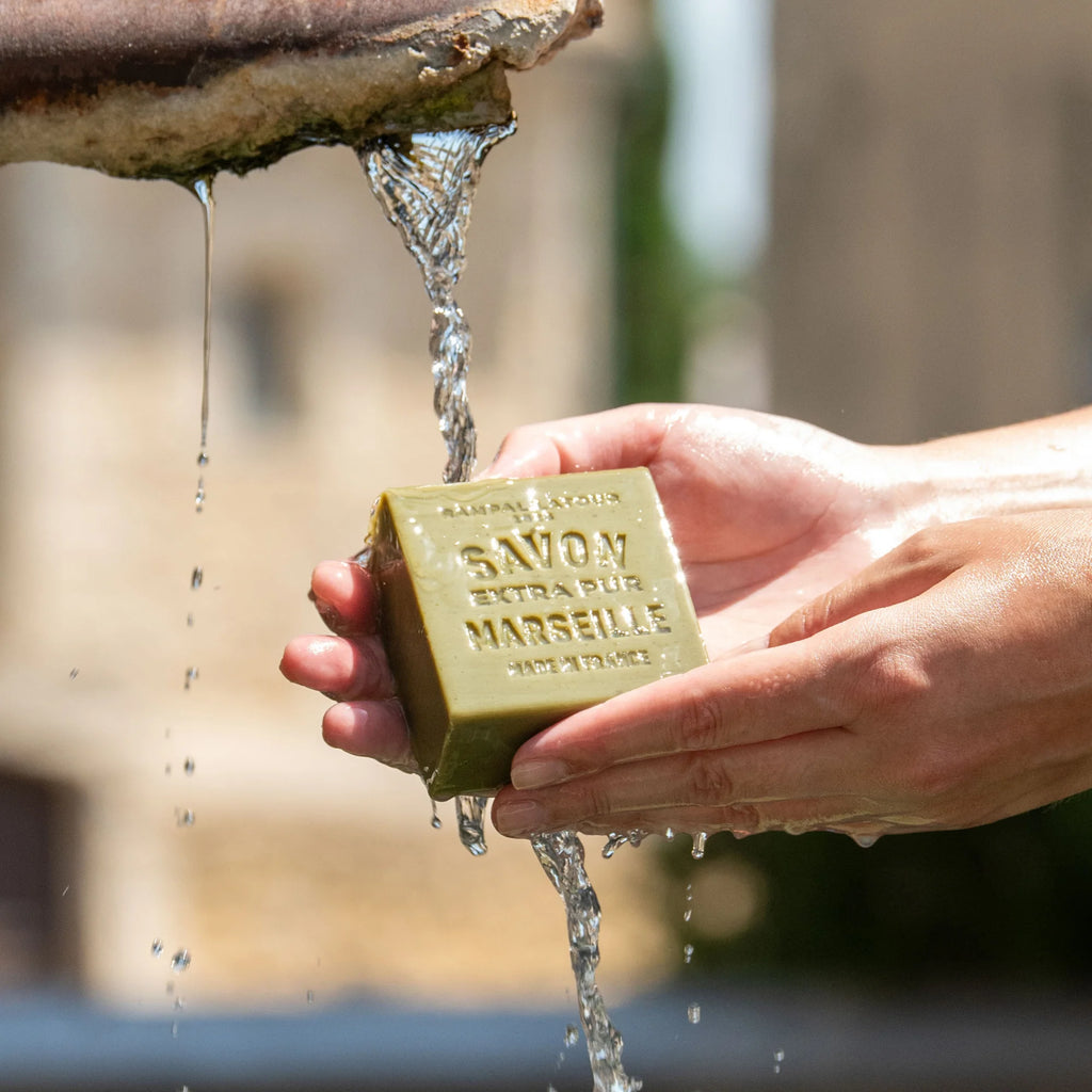 Green/Olive Oil Bar - The traditional green Marseille soap with olive oil is suitable for frequent use, it will not dry out your skin. Contains as much glycerin as a moisturizer, i.e. 2.5%. Your perfect multi-purpose ally for the home. It is also suitable for hand washing. Versatile and practical for all small jobs around the house. Place it throughout the house, leave one near each sink and in the laundry room. This French tradition is the perfect addition for any home.