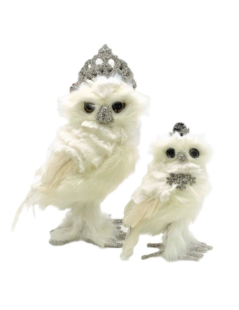 Behold the queen of the wintry woods: this majestic creature flaunts a plume of snowy white faux fur and genuine feathers that look like they flew straight out of a fairy tale. Her beak and talons sparkle with German silver glitter—clearly, she’s not here to blend in. And just when you think she couldn’t get any more fabulous, there’s the pièce de résistance: a silver glittered tiara perched proudly atop her royal brow. Regal? Oh, absolutely. She's practically demanding a throne on your mantel.