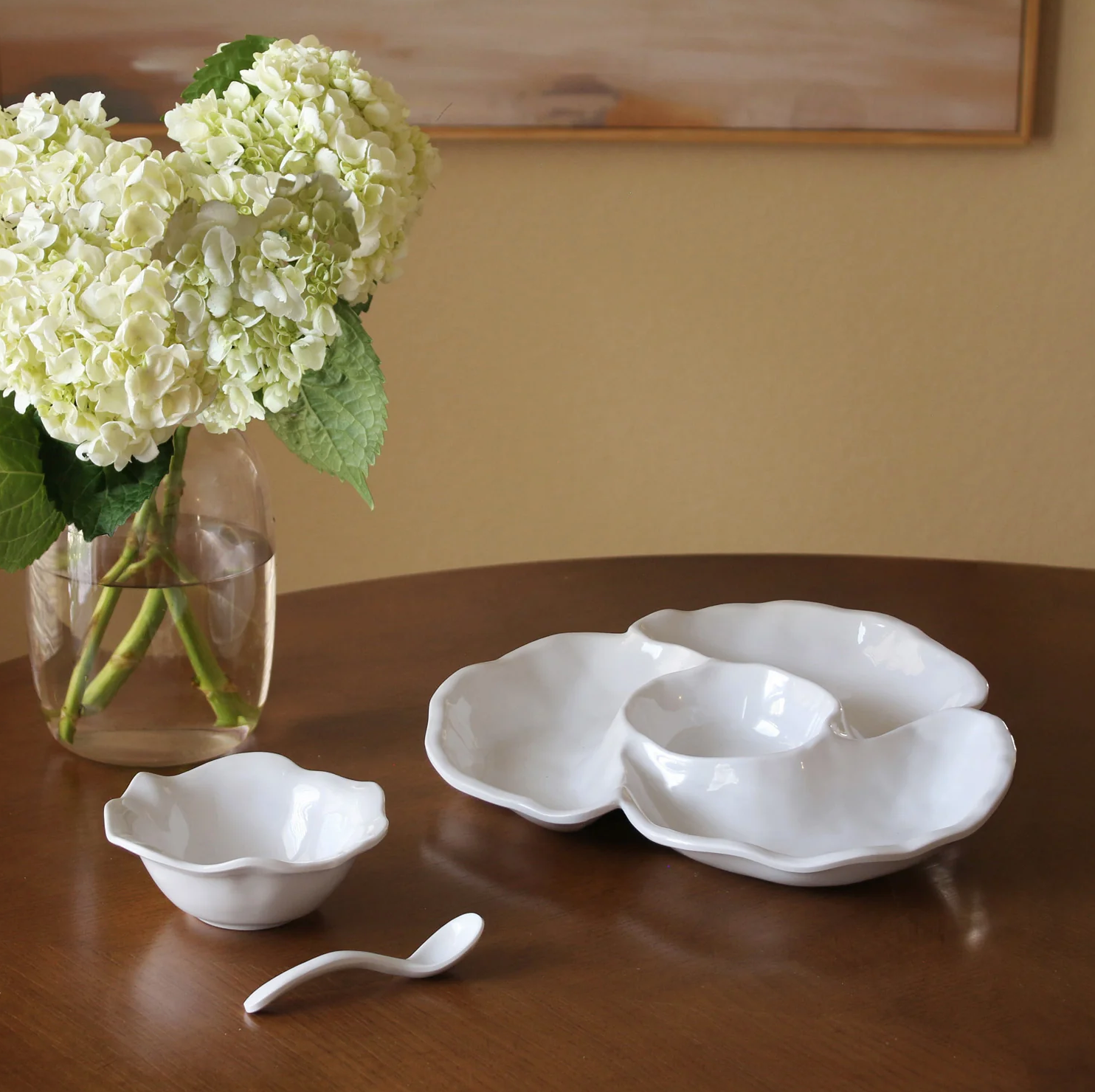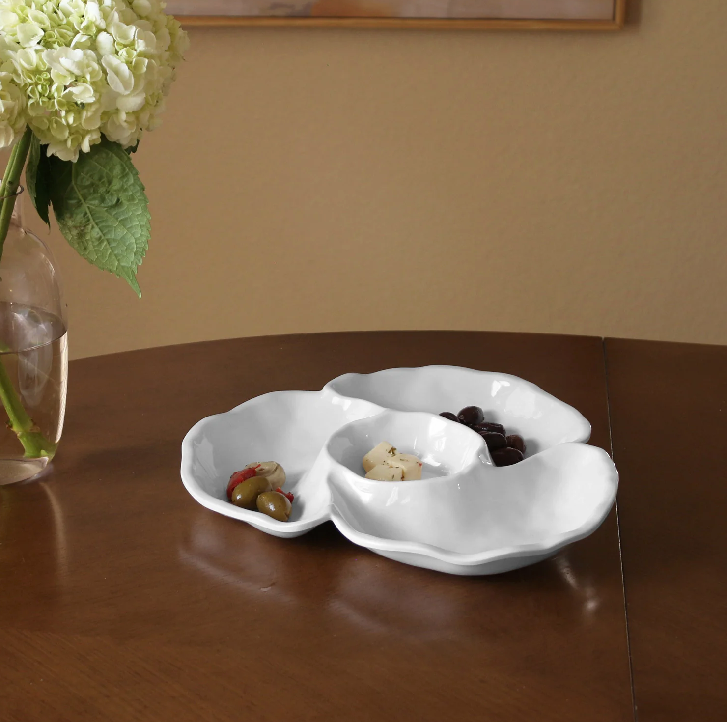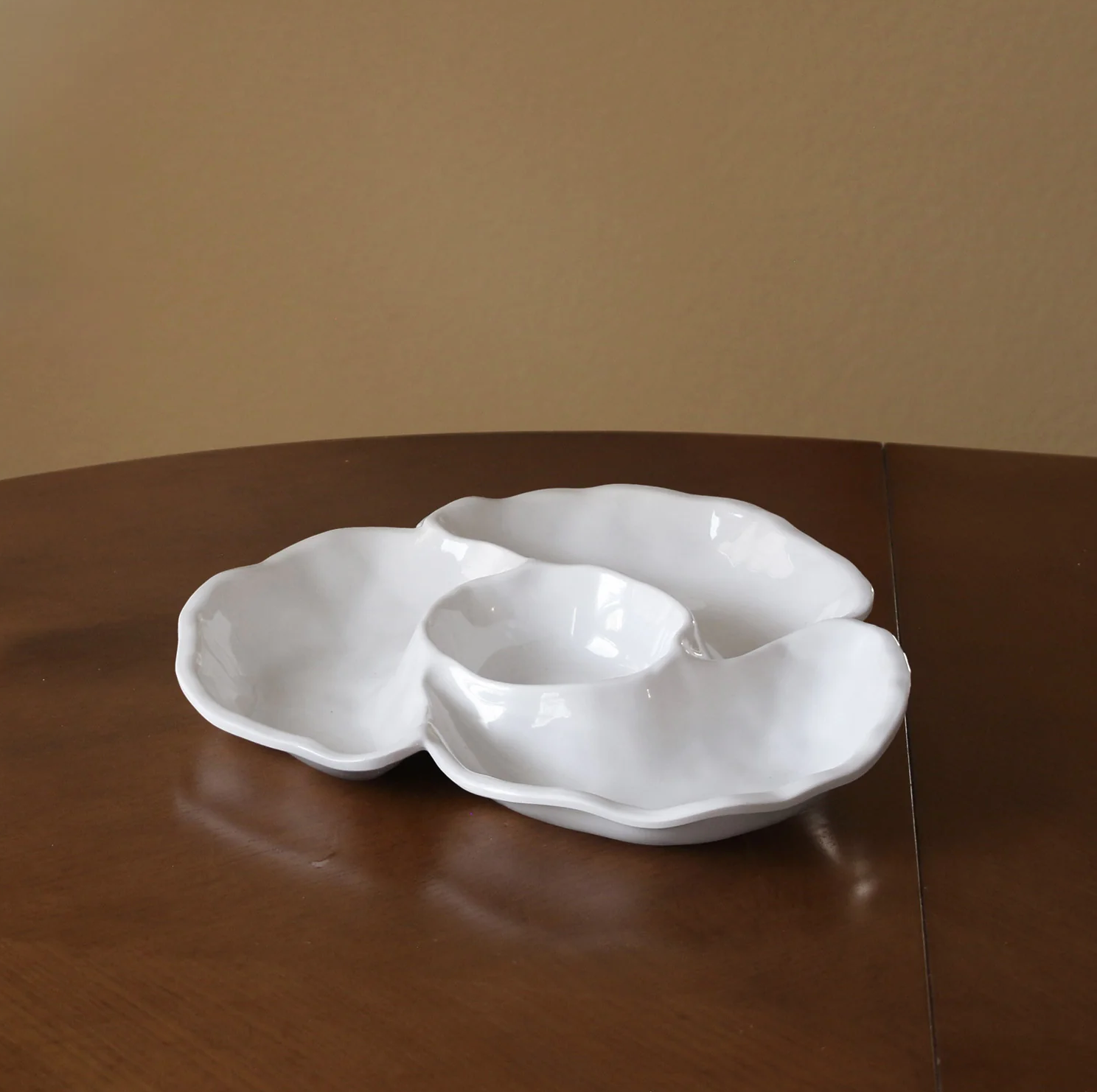 Not your mom’s divided dish. Inspired by the flowing shapes of organic forms, and made of luxury melamine. A beautiful design that speaks to many of today's hottest lifestyle trends. This stylish divided piece triples the serving possibilities and is perfectly suited to small-space living. Great for presenting dips, garnishes and cocktail fixings--at informal or formal (but never stuffy) gatherings. A gift that will be treasured—and loved. Made of luxury melamine for everyday enjoyment, this piece is ideally suited for indoor and outdoor entertainment.