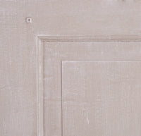 Tarnished brass hardware. Faux key on functional drawer. Hardwood solids + veneers. Center has solid drybrush color.